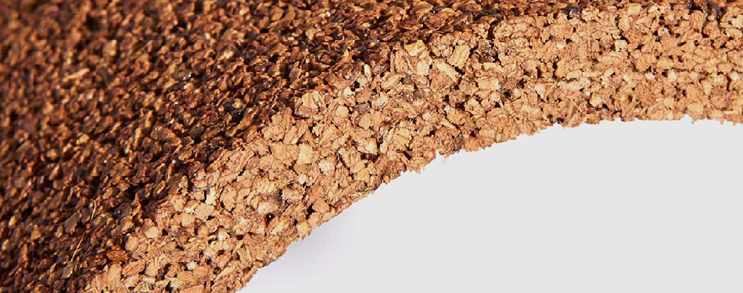 Cork surfacing made with the Piusys cork binder is an eco‑friendly material that offers permeability, abrasion resistance, shock absorption, antimicrobial performance, and low thermal conductivity, without any risk of heavy metals.