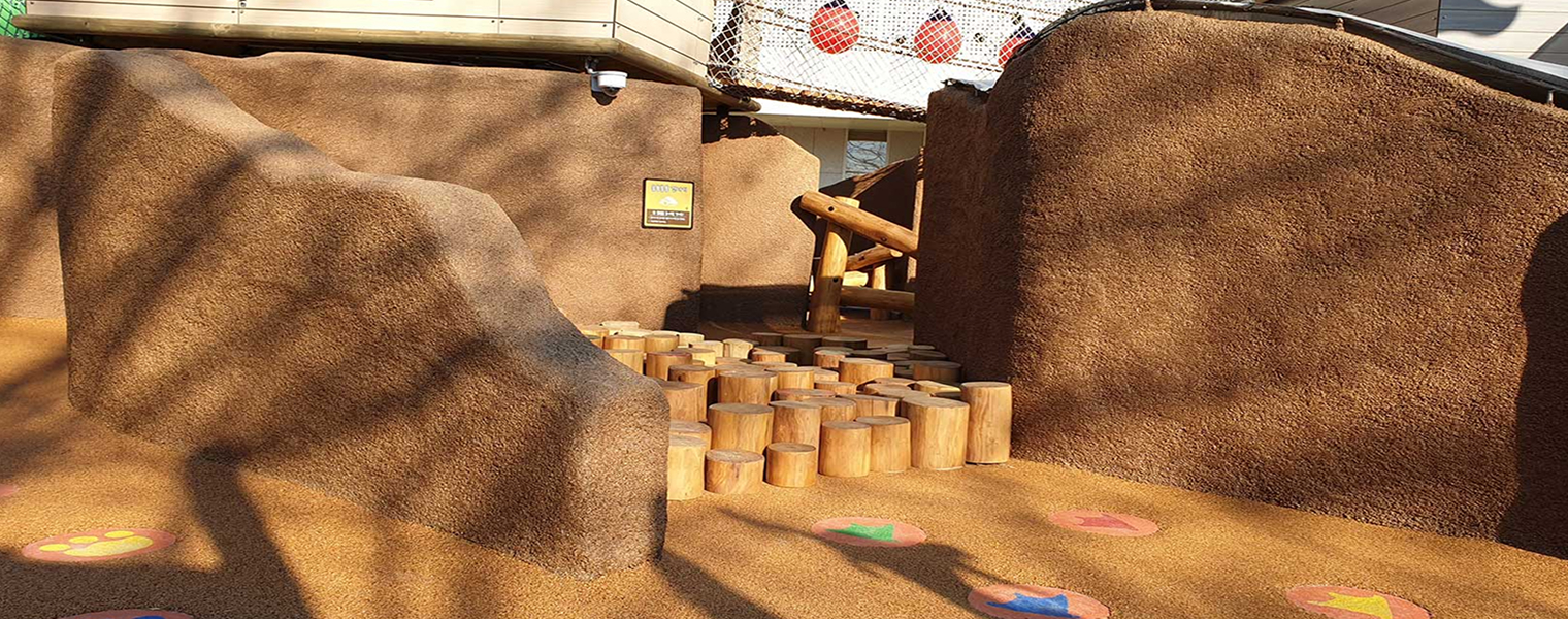 Cork surfacing is installed by blending eco-friendly cork chips, made from the pure bark of 25-year-old oak trees, with an environmentally friendly cork binder.