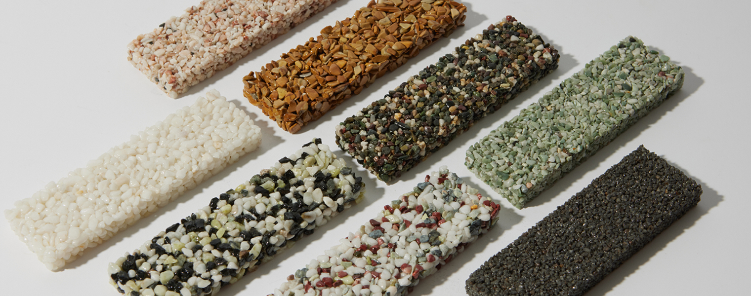Our interior binder is developed using eco-friendly biomass-based materials and is designed specifically for interior applications. It maintains its original color over time without yellowing, so the natural color of aggregates and finishes is preserved.
